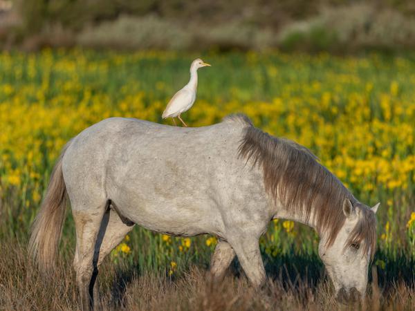 Der etwa 50 Zentimeter große Kuhreiher kommt dem LBV zufolge weltweit vor, in Europa vor allem in Spanien. In Afrika sei der weiße Vogel mit dem gelben Schnabel oft dabei zu beobachten, wie er auf dem Rücken von Büffeln sitze. Er ernähre sich von Insekten, die er meist in Viehherden oder nach der Mahd auf Wiesen finde.