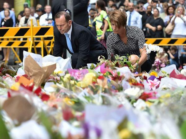 Monis' wirres Gebaren gibt den Australiern zumindest die vage Hoffnung, dass es sich bei ihm um keinen „richtigen“ Terroristen gehandelt hat. Abbott bezeichnete die dramatischen Ereignisse als eine „Berührung“ mit Terrorismus. Ohnehin fiel auf, dass Politiker aller Parteien das Wort Terrorismus kaum gebrauchten. Abbott legte mit seiner Frau Margie genauso Blumen nieder wie Oppositionsführer Bill Shorten sowie Generalgouverneur Peter Cosgrove, der Vertreter des nominellen Staatsoberhauptes Königin Elizabeth II.. Die Vertreter des Staates waren aber nur trauernde Australier wie tausende andere auch.