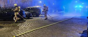 In der Nacht brennen in Moabit mehrere Autos. Die Feuerwehr löscht vier Fahrzeuge – muss aber Spezialkräfte hinzuziehen. Der Regierende Bürgermeister spricht von „feigen Anschlägen“.