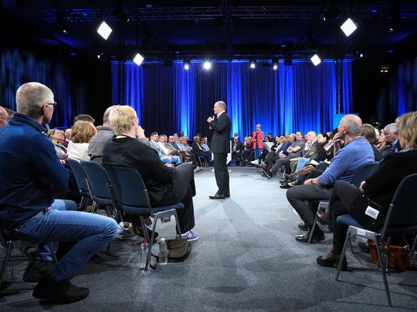 Zum zweiten Mal stellte sich der Bundeskanzler den Bürgern in diesem Jahr, wieder im Osten. Mit klaren Botschaften hielt Scholz sich, anders als in Dresden, diesmal zurück.