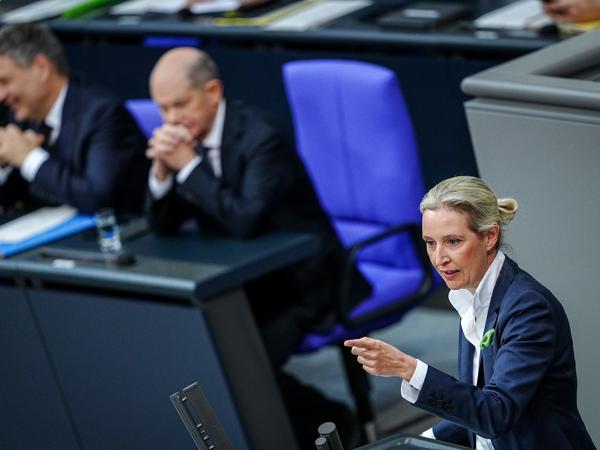 „Was machen Sie hier eigentlich?“, fragt die AfD-Kanzlerkandidatin Alice Weidel während ihrer Rede betont herablassend in Richtung der Grünen. „Sie sind nur am Dazwischenrufen, Sie sind nur am Brüllen.“ Allerdings sind es im Laufe der Debatte vor allem die AfD-Abgeordneten, die – nicht nur heute, sondern grundsätzlich – in besonderem Ausmaß mit ruppigen Zwischenrufen für Unruhe in Plenardebatten sorgen.