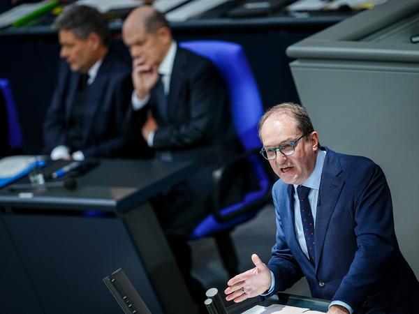 Nach Habeck ist FDP-Chef Christian Lindner an der Reihe. Dieser eröffnet seine Rede mit einer Rückschau auf das Scheitern der Ampel. In seiner Rede attackiert er Scholz und Habeck ein ums andere Mal, wendet sich vom Rednerpult in Richtung der Regierungsbank. Dort sitzen die beiden Ex-Partner und schenken ihm kaum Aufmerksamkeit.
