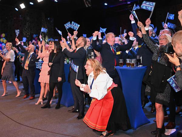 Aller Voraussicht nach dürfte er auf diesem Weg auf einen angewiesen sein, der bei Wahlen bislang immer außen vor gelassen wurde: dem Chef der Rechtspopulisten, Jimmie Åkesson. „Wir sind heute eine richtig große Partei“, sagte er vor jubelnden Parteianhängern. 2010 habe die Partei 5,7 Prozent der Stimmen erhalten - nun dürften es wohl 20,7 Prozent sein.