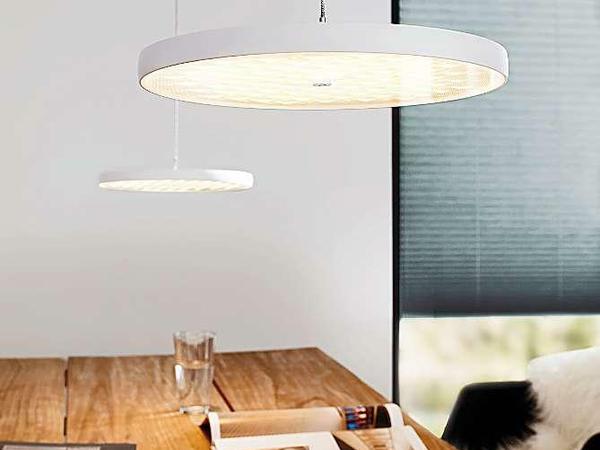Hält man die Hand eine Weile ruhig ins Licht, kann man die Helligkeit der Leuchte regeln. Eine fast magische Funktion, die auch die geheimnisvoll wirkende Pendelleuchte „Lisgo Sky“ besitzt. Die Leuchte besteht aus einem fast 140 Zentimeter langen leicht geschwungenen Bogen, der über ein Gegengewicht auf Höhe gehalten wird. Die Krümmung lässt Raumfahrtassoziationen zu – denn das Licht erstrahlt so wie ein Sonnenaufgang über einer gekrümmten Erdoberfläche. Mit Hilfe neuer LED-Platinen ist es dem Hersteller gelungen, die Lichtausbeute auf fast 3000 Lumen zu verdoppeln. Dafür wird aber nur zehn Prozent mehr Energie als beim Vorgängermodell benötigt. Die 112 LEDs benötigen jetzt 36 Watt. Der Clou bei dieser Leuchte: Dank der Krümmung können die beiden höher liegenden Enden einen langen Tisch besser ausleuchten.