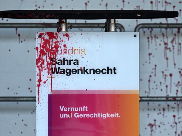 Zwischenfall bei Wahlkampfveranstaltung: Sahra Wagenknecht mit roter Flüssigkeit attackiert