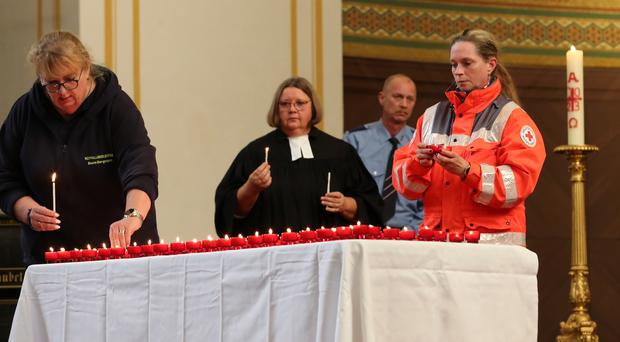 Auf dem alten Markt, vor der Potsdamer Nikolaikirche, standen am Sonnabend die Einsatzwagen: Feuerwehr, Polizei, Technisches Hilfswerk, Malteser, Johanniter, Notfallseelsorger und DRK. Drinnen, in der Kirche, stand Brandenburgs Innenminister Michael Stübgen (CDU) am Lesepult. „Hartmut Bachmann … Ronny Bosse … Andreas Böhme…“ Während Stübgen die Namen verlas, spielten Musiker des Polizeiorchesters getragene Musik. Und bei jedem verlesenen Namen entzündeten Seelsorger eine Kerze vor dem Altar.