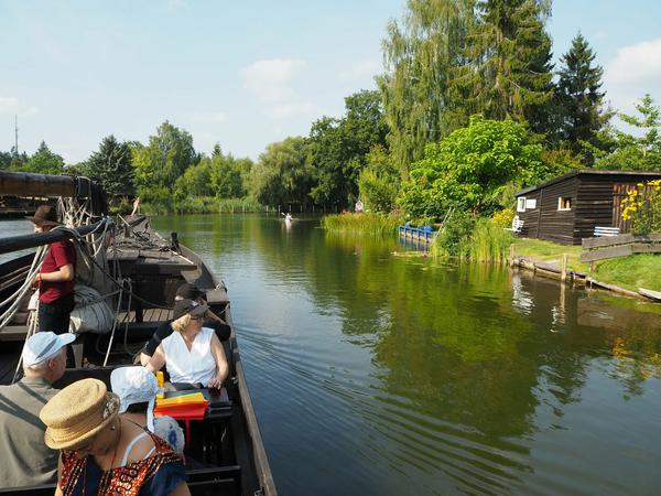 Auf diesen Augenblick haben sich die 23 Charter-Passagiere an diesem sonnigen Tag besonders gefreut: Die ganze Geburtstagsgesellschaft gleitet, wie einst die echte Besatzung der Kaffenkähne, nur mit der Kraft des Windes dahin. Eine Art Zeitreise unter Segeln - zurück ins 17. bis 19. Jahrhundert. Ein außergewöhnliches märkisches Freizeitvergnügen.