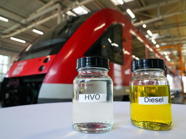 Aber dann war es soweit: In der DB-Regio-Werkstatt in Neuruppin tankte zum ersten Mal ein Triebwagen den umweltfreundlichen HVO-Kraftstoff – ein aus Pflanzenöl hergestellter Biodiesel, der bis zu 90 Prozent der CO2-Emissionen einsparen soll.