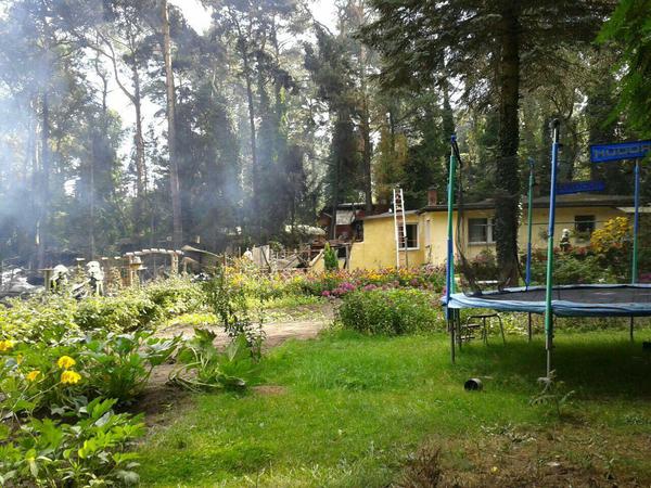 Zwei Häuser sind komplett ausgebrannt, zwei weitere schwer beschädigt, dazu kommen mehrere zerstörte Schuppen und Nebengebäude. Das ist die vorläufige Bilanz eine Großeinsatzes, wie ihn die Feuerwehren von Potsdam und den umliegenden Gemeinden nur selten erlebt haben. 95 Feuerwehrleute waren am Sonntagmorgen im Einsatz, sagt Einsatzleiter Schulz. Mit insgesamt 26 Fahrzeugen waren Berufsfeuerwehren und Freiwillige Feuerwehren aus Potsdam und Dallgow-Döberitz zu der Siedlung in einem bewaldeten Gebiet gekommen.
