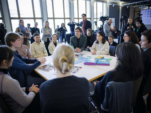 Die Außenministerin trat gemeinsam mit Kulturstaatsministerin Claudia Roth und Bundesjugendministerin Lisa Paus (alle Grüne) bei einem Besuch der Gedenkstätte für eine Stärkung der Erinnerungsarbeit ein. Sie tauschten sich mit Teilnehmern des Bundesprogramms „Jugend erinnert“ aus ganz Deutschland über einige Projekte aus und kamen mit den Jugendlichen eine Stunde lang direkt ins Gespräch. Die drei Ministerinnen betonten dabei, dass die Förderung dieser Bildungsarbeit fortgesetzt und ausgebaut werden solle.