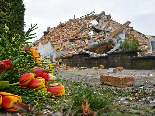 Röhrs zufolge sind Kriminaltechniker vor Ort und tragen den Schutt Stück für Stück ab. Das werde einige Tage dauern. "Dabei wird auch geschaut, ob noch persönliche Dinge der Hausbewohner zu finden sind." Erst wenn die Untersuchungen abgeschlossen seien, werde der Tatort freigegeben.