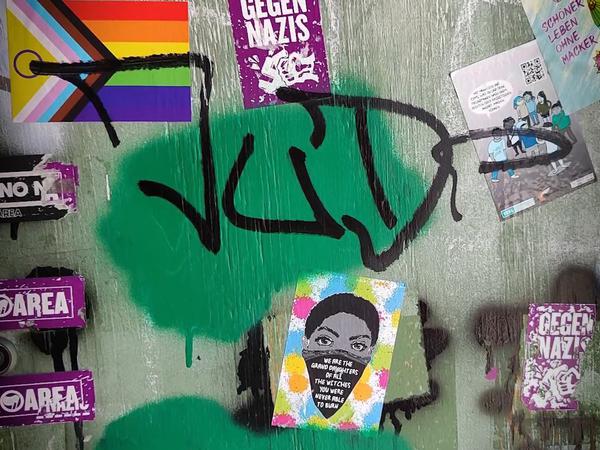 Die direkten, unmittelbaren Attacken auf das Haus und seine Bewohner sind das eine, das, was rund um das Gebäude passiert, das andere. Rechtsextreme Sticker, rassistische und antisemitische Parolen, Hakenkreuze an den Wänden. „Ganz stumpfer Rassismus und Antisemitismus“, sagt Fabi. Vor allem rechte Jugendliche seien in der Gegend aktiv, teilweise seien die erst 13 oder 14 Jahre alt.