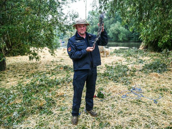Um den Splitterflug zu begrenzen, wird erneut ein sieben Mal sieben Meter großes Strohfloß zum Einsatz kommen. Mehr als 300 Helferinnen und Helfer, unter anderem von der Landeshauptstadt Potsdam, der Berufsfeuerwehr, freiwilligen Feuerwehren, Bundespolizei und Polizei sind am Mittwoch im Einsatz, um den Sperrkreis zu räumen und abzusichern.