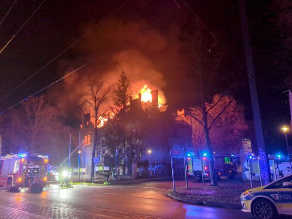 Historische Villa in Flammen: Potsdamer Feuerwehr rettet Wohnungslosen aus dem Gebäude