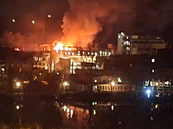 Das Feuer in der Villa, gesehen vom Hochhaus im Humboldtring. Das Foto hat unser Leser Ulf Mattig gemacht.