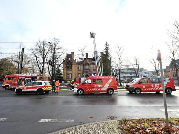 Löscharbeiten an einer Villa in der Berliner Straße.