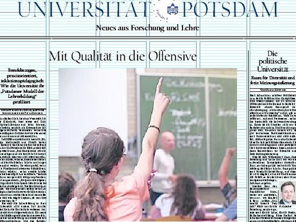 Jetzt zum Herunterladen: Die Universität Potsdam zeigt in einer neuen Sonderbeilage mit PNN und Tagesspiegel, wie sie die Lehrerbildung profilieren will, was es mit der politischen Universität auf sich hat und welche Forschungsschwerpunkte aktuell anstehen.