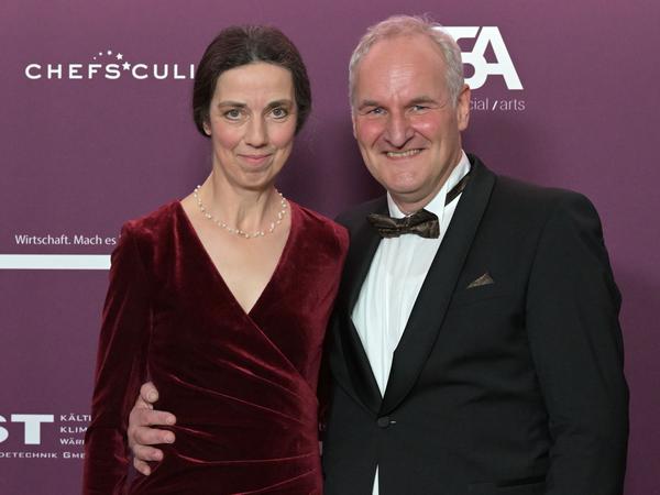 Brandenburgs neue Ministerin für Gesundheit und Soziales Britta Müller (BSW) mit Potsdams früherem Oberbürgermeister Jann Jakobs (SPD). Jakobs ist Vorsitzender des Kuratoriums des Brandenburg-Balls.