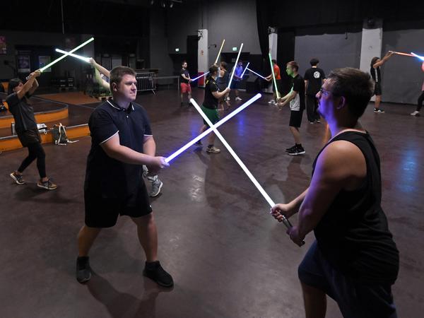 Ein Paradies für Star-Wars-Fans: Beim „Ludosport“ wird mit Lichtschwertern gekämpft. Die gelten als echte Sportgeräte – aber piepen und brummen auch.