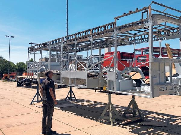 Dazu wurde der alte Sightseeing-Doppeldecker komplett entkernt: Motor, Getriebe, Tank – alles kam raus, bis nur noch das Skelett des Fahrzeugs übrig war. Rund drei Wochen dauert ein Umbau und kostet rund 350 000 Euro, dafür gab es auch Förderung vom Bund. Die Batterien haben eine Reichweite von 140 Kilometer – völlig ausreichend für den Einsatz in Potsdam, nachts sind die Busse ohnehin nicht im Betrieb und können aufladen. Das lohnt sich: Eine Aufladung pro Tag kostet etwa 25 Euro, die Tankkosten für den Diesel betragen rund das Doppelte, sagt Lang.