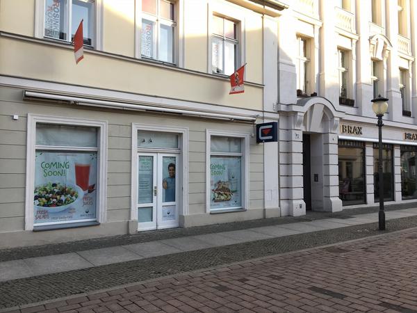 Ein Blick ins Ladeninnere wird derzeit durch große Plakate verhindert. Ein genauer Eröffnungstermin steht derzeit noch nicht fest. "Voraussichtlich im Mai 2019" hieß es am Montag seitens des Unternehmens. Noch werden für die Potsdamer Filiale Mitarbeiter gesucht.