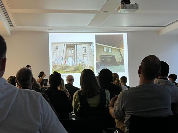 Gleich zwei Gruppen beschäftigten sich mit dem ehemaligen Kasino und seiner Weiternutzung. Ein Bestandsobjekt, bei dem sich auch Krampnitz-Projektleiter Oberthür schon seit vier Jahren darüber Gedanken macht, was daraus werden soll. Lucia, Anita, Anna, Kim und Erina würden ein Spa-Hotel daraus machen, mit Zimmern im Obergeschoss, Fitnessraum, Pool, Kino, Danceroom, Bibliothek, einer Art Wintergarten und etwa einem Weinlager. Sie haben auch über umweltfreundliche Energie, Solarpanele, Wärmepumpen und Brauchwassernutzung nachgedacht.
