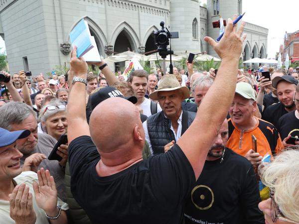 Dicht an dicht standen die Menschen Freitagvormittag vor dem Bau des Potsdamer Verwaltungsgerichts am Nauener Tor. Kein Abstand, keine Mund-Nasen-Masken. Laut Polizei waren es rund 200 Personen, die sich dort versammelt hatten. Sie wollten Heiko Schrang unterstützen - einen Verschwörungstheoretiker, der sich der Zahlung des Rundfunkbeitrags verweigert und gegen den deshalb ein Verfahren läuft. Außerdem gehört Schrang zu den Corona-Leugnern. Er verbreitet, Covid-19 sei „ein trojanisches Pferd”, Teil eines großen Plans, Menschen zu unterdrücken. PNN-Autor Carsten Holm war bei der Zusammenkunft vor Ort. Hier lesen Sie seinen Bericht.