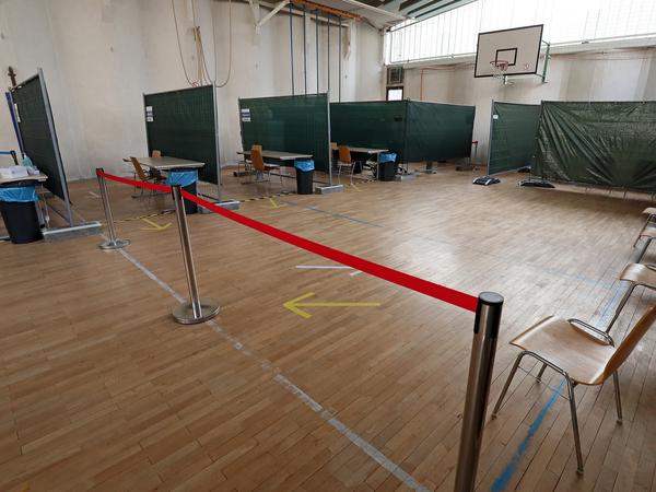 Potsdam - In der Sporthalle auf dem Campus der Stadtverwaltung hat Oberbürgermeister Mike Schubert (SPD) am Mittwochmorgen (14.4.) das 24. Corona-Testzentrum in Potsdam eröffnet. Kurz nach 9 Uhr ließ er sich selbst testen – mit negativem Ergebnis. Die neue Teststelle soll den Bediensteten der Stadtverwaltung und den MitarbeiterInnen der kommunalen Unternehmen die Möglichkeit geben, sich zweimal wöchentlich einem Schnelltest zu unterziehen.