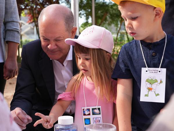 Raketenstart in Golm: Kleine Forscher experimentieren in Potsdam mit Bundeskanzler Olaf Scholz