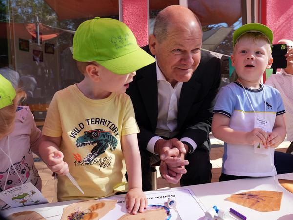 Immerhin den letzten Wunsch erfüllte Scholz mit seinem Besuch. „Diejenigen, die in den Kitas arbeiten, leisten wirklich schwere Arbeit, die wichtig ist für die Zukunft unseres Landes, weil es um Kinder geht“, sagte er. Auf die Frage zu der von der Ampel-Koalition vereinbarten Kindergrundsicherung sagte Scholz, dass dafür viel Vorarbeit geleistet worden sei. Anfang 2025 solle diese in Kraft treten, damit Kinder nicht in Armut leben müssten. Etwa eine halbe Stunde nahm sich Scholz für die Kinder Zeit, bevor er sich in Berlin wieder um die „Heizungsfrage“ kümmern musste.