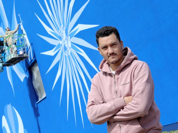 Und auch auf Außenmauern tut sich im Jahr 2025 Künstlerisches. Die zuvor oftmals kritisierte kahle und triste Fassade des Blu-Schwimmbades erhält – Überraschung – eine blaue Bemalung mit floralen Mustern. Geschaffen hat das Werk „Der Botanische Garten“ der Künstler Robin Rhode, Ende Mai wird es fertiggestellt.