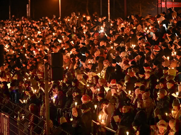 Gemeinsam singen im Lichtermeer: Zum siebten Mal haben sich kurz vor Heilig Abend tausende Menschen im Babelsberger Karl-Liebknecht-Stadion zum alljährlichen Weihnachtssingen zusammengefunden.