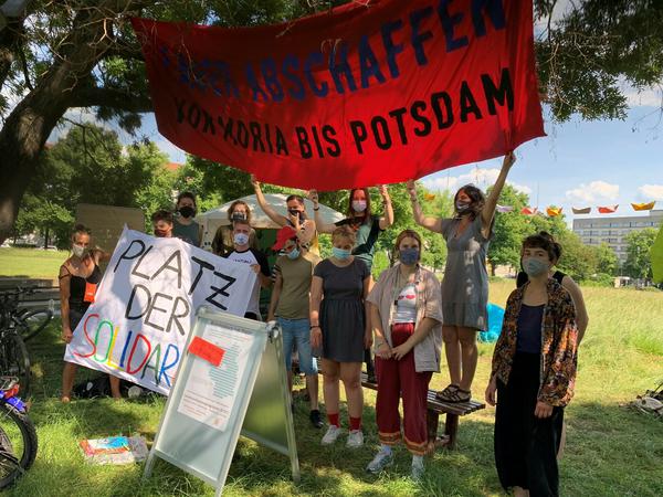 Potsdam hat Platz. Das wollen Aktivisten des Potsdam-Konvoi mit einem Protest-Camp samt Sofa auf dem Platz der Einheit zum Ausdruck bringen. Sie werben für die Aufnahme Geflüchteter aus den griechischen Elendslagern und sammeln noch bis heute mit Unterstützung der Initiative Seebrücke Unterschriften für eine Petition. Mehr als 200 Besucher trugen sich bislang ein.