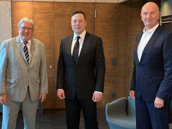 Spannend macht es auch Elon Musk. Wann kommt er denn nun zur Gigafactory nach Grünheide? Heute wahrscheinlich, wird gemunkelt. Brandenburgs "Mister Tesla" hat der Tesla-Boss jedenfalls gestern schon getroffen. In Berlin sprach Musk, gerade auf Deutschlandvisite, mit Wirtschaftsminister Jörg Steinbach, der den Deal für den Fabrikbau maßgeblich mit eingefädelt hatte, und Ministerpräsident Dietmar Woidke (beide SPD). Die Staatskanzlei twitterte nach dem Geheimdate ein Bild des Trios und textete: "Elon ist in Deutschland? Da ist ein Treffen natürlich ein Musk-Have." Die Fabrik in Grünheide, in der pro Jahr 500.000 Fahrzeuge hergestellt werden sollen und von der aus Tesla den europäischen Markt erobern will, dürfte die derzeit schnellste Großbaustelle der Bundesrepublik sein. Der Startschuss für das Projekt war erst im November 2019 gegeben worden, seit Mitte Juli laufen Hochbauarbeiten. Mein Kollege Thorsten Metzner über einen besonderen Besuch und ein Brandenburger Bauprojekt, das Rainald Grebe (siehe Gutes tun) dazu bringen könnte, sein Brandenburg-Lied umzuschreiben.