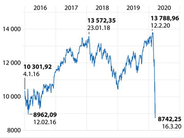 Die Ausschläge hier sind über einen Tag gesehen erheblich, das ist schon sehr ungewöhnlich. Keiner weiß wirklich, wie die Lage einzuschätzen ist. Auch, dass der Dax dann erst im März abrutschte, zeigt, dass es mit der Rationalität der Aktienmärkte nicht allzu weit her ist. Denn im Grunde hätte man schon an der Entwicklung in China seit Jahresbeginn sehen können, dass der Weltwirtschaft gewaltiges Ungemach droht. Normalerweise nehmen Aktienmärkte so etwas vorweg. Diesmal aber nicht. Der Optimismus war nicht gerechtfertigt. Dann wurde die Bewegung nachgeholt und der Absturz von Anfang März war gewaltig.