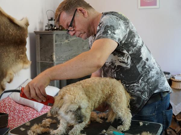 Potsdam/Schwielowsee - Leo ist nicht begeistert. Immer wieder rennt der kleine Hund in den Keller, um sich zu verstecken. Als seine Besitzerin, Sabina Lüders, ihn holt, läuft er unruhig durch das Wohnzimmer. Dort hat Torsten Baak in einer Ecke bereits einen Tisch aufgebaut, daneben ein Koffer mit diversen Utensilien. Der mobile Hundefriseur aus Potsdam ist zu Besuch bei der Familie in Schwielosee, um dem Tier einen neuen Schnitt zu verpassen.