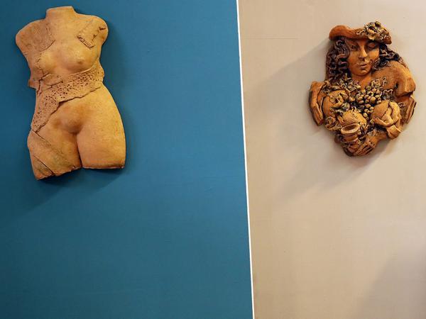 Rößler arbeitet sich tief in den Ton hinein, formt, malt, brennt. Er lässt ihn zu weich fließenden, meist weiblichen Skulpturen wachsen, überzieht die Torsi mit zarten Spitzen, Masken, Bandagen. Der Liebreiz bekommt Risse, das Begehrenswerte ist verletzlich. Wie „Die kleine Schwarze“ von 2001, der man gern über die geschwungenen Hüften streicht.