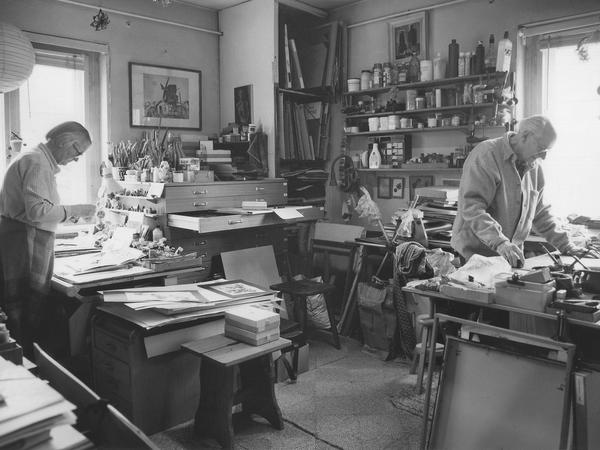 Vor 1939 war er Buchhalter gewesen, ein Wunsch des Vaters. Die Berufsbezeichnung „Kunstmaler“ trug er erstmals im Mai 1945. Das Kriegsende, ein Neubeginn. Ein frühes Werk trägt den Titel „Der leere Raum“, entstanden 1946. Ein Mann im Halbdunkel auf einem Stuhl, das Gesicht von den Händen gestützt. Daneben ein anderer Stuhl, leer. Ein Bild der Ratlosigkeit, des Verlorenseins. Es stützt Kumlehns These, dass hier jemand sich und die Welt grundsätzlich befragte.