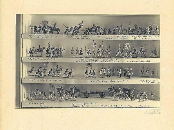 Baurs Fotos zeigen, womit das Garnisonmuseum bestückt war: ausufernde Setzkästen mit Zinnsoldaten, Gemälde von hohen Militärs und Schlachten – und lebensgroße Wachsfiguren, die wie fein gearbeitete Modepuppen verschiedene preußische Uniformen zur Schau tragen. Die Figuren sind prominente Gäste: Sie waren Teil des deutschen Beitrags zur Pariser Weltausstellung 1900 und sollen sogar eine Goldmedaille bekommen haben. Nach 1918 allerdings sank ihr Marktwert, zumindest im republikanischen Berlin, wo sie im Zeughaus lagerten. Dort wollte man von den Figuren nichts mehr wissen – im Potsdamer Garnisonmuseum schon.