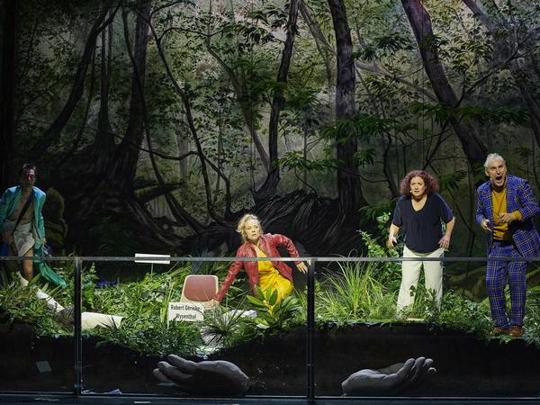 Naturkunde. In der Regie von Catharina Fillers spielt "Die Jury tagt" (mit Henning Strübbe, Franziska Melzer, Bettina Riebesel, Joachim Berger) von Julia Schoch im Gestrüpp.