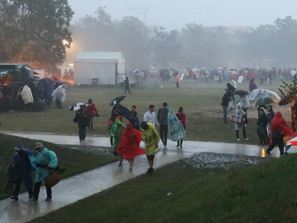 Wie berichtet ist die Feuerwerkersinfonie aufgrund eines Unwetters kurzfristig abgebrochen worden. Rund 5000 Besucher mussten fast fluchtartig den Volkspark verlassen, weil sich direkt über dem Gelände eine Gewitterzelle befand. Die Evakuierung des Geländes soll nach Aussagen des Veranstalters zügig und problemlos verlaufen sein. Verletzt wurde dabei niemand.