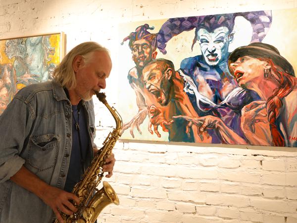 Menge will die Räumlichkeiten des historischen zweigeschossigen Wirtschaftsgebäudes mit seiner Kunst nicht überladen. An den alten Backsteinwänden hat sein mit Öl auf Leinwand gemalter Harlekin mit dem grimmigen Gesicht und seinen schreienden Freunden genug Luft, um laut zu werden. „Vielen sind meine Bilder zu laut“, sagt der Maler. Obwohl er weiß, dass seine Werke – je nach dem, in welchem Raum sie hängen – mitunter auch ganz ruhig werden können. In privaten Räumen, über dem Sofa oder im Flur „gucken die sich dann weg“, sagt er.