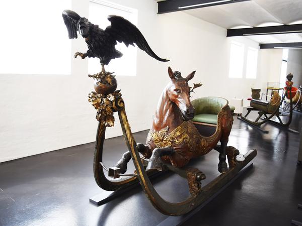 Und schon einen Tag später, am Sonntag, 30. Juni geht es munter weiter mit der Führung „Königskinder auf Reisen“. Bei der Familienführung geht es in die Paretzer Schlossremise, in der kostbar verzierte Kutschen, Schlitten und Sänften nur darauf warten, entdeckt zu werden. Und es geht dabei um allerhand Geschichten, wie man sie sich auch früher schon gern erzählte. Zum Beispiel die von den Ziegen, die die Königskinder vor die Kutsche gespannt haben sollen. Wahrheit oder geflunkert? Bei der Führung erfährt man es – und auch, wozu der einst der sogenannte Wurstschlitten diente.