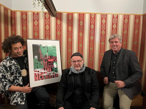 „Wow, very cool“, sagt Makaya McCraven, als er am Mittwoch den Soundcheck Award in Händen hält. Der Schlagzeuger aus Chicago hatte seine geplanten Konzerte in Europa wegen des Ausbruchs der Corona-Pandemie mehrmals verschoben. Deshalb verzögerte sich auch dieser Moment: die Möglichkeit, dem Preisträger des Soundcheck Awards 2020 endlich zu überreichen, was ihm gebührt - eine künstlerische Grafik des Illustrators und Designers Otto Steininger. McCraven erhält sie für „We’re New Again“, eine Bearbeitung des Werks von Gil Scott-Heron.