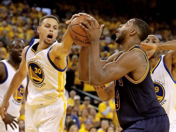 Auch ohne Stephen Curry, der zum größten Teil mit Foulproblemen auf der Bank saß, zog das Team aus Kalifornien davon (82:62). Der wertvollste Spieler der regulären Saison (MVP) erzielte 15 Zähler in lediglich 20 Minuten. Der Meister traf hochprozentig aus der Distanz provozierte in der Defensive immer wieder Ballverluste der Cavaliers.