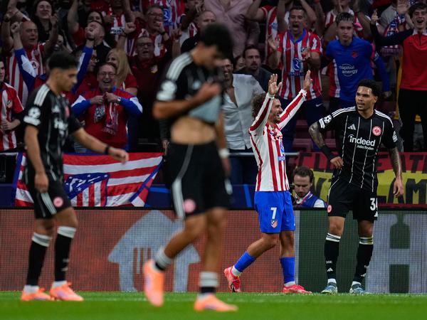 Und es kam noch schlimmer für die Hessen. Alvarez ließ mit einem Antritt Frankfurts Abwehrchef Robin Koch stehen und legte zurück auf Griezmann, der per Direktabnahme mit seinem 200. Tor im Trikot der Rojiblancos zum 3:0 traf und sich danach von den Fans für seine Vereinsrekordmarke feiern ließ.