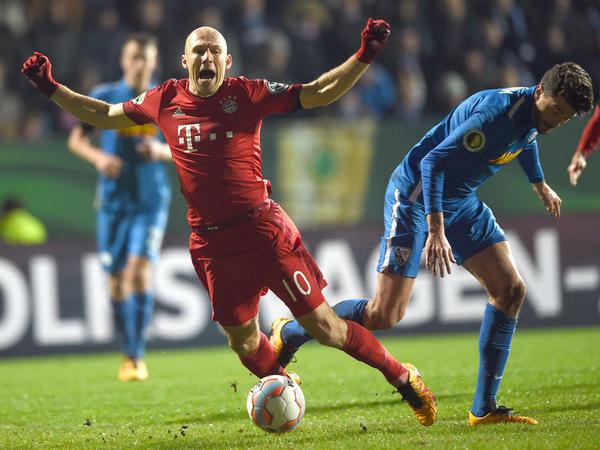Tja, selbst schuld. Von Arjen Robben heißt fliegen und siegen lernen. Der Stürmer des FC Bayern München hatte am Mittwoch im Pokalspiel gegen den VfL Bochum in einer ähnlichen Situation (leichte Berührung seines Fußes) das volle Flugprogramm gestartet und seiner Mannschaft auf dieser Weise einen Elfmeter verschafft und dem Bochumer Jan Simunek eine Rote Karte eingebrockt.