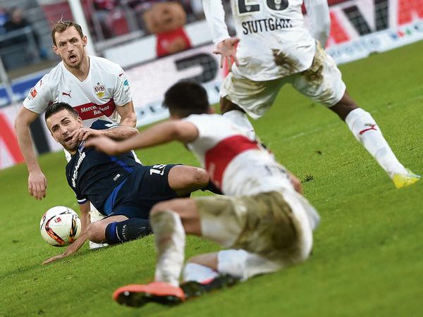13.40 Uhr – Ungewohnte Belastung. Bei Hertha BSC haben sie als Erklärung für die Niederlage in Stuttgart unter anderem auf die hohe Belastung der vergangenen Woche, sowohl körperlich als auch geistig, ausgemacht. Völlig von der Hand zu weisen ist diese Erklärung nicht. Die Berliner, die nach ihrem Pokalspiel einen Tag weniger Pause hatten als der VfB, wirkten in Stuttgart weit weniger frisch. Vor allem nach dem 0:1 schienen sie nicht mehr nachlegen zu können. Aber dieses Problem war für Hertha nicht neu. In dieser Saison ist die Mannschaft sechs Mal in Rückstand geraten. Nur einen einzigen Punkt (beim 1:1 gegen Frankfurt) hat sie anschließend noch geholt, die restlichen fünf Spiele gingen verloren.