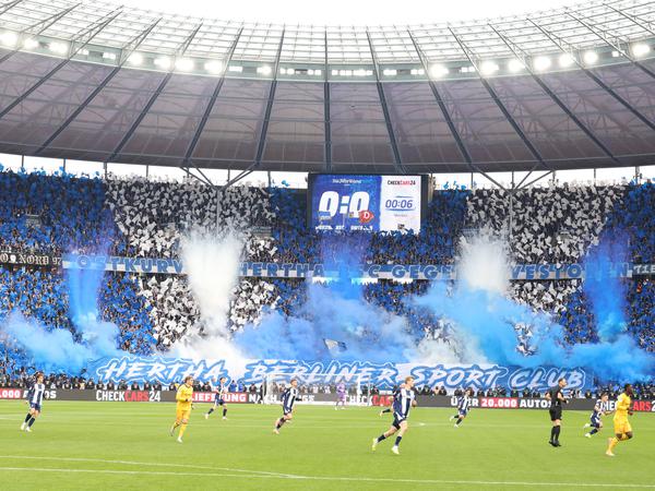 Die Fans von Dynamo Dresden und Hertha BSC sorgen für prächtige Stimmung im Olympiastadion. Auf dem Feld sind die Berliner hingegen zu stark für den Aufsteiger.
