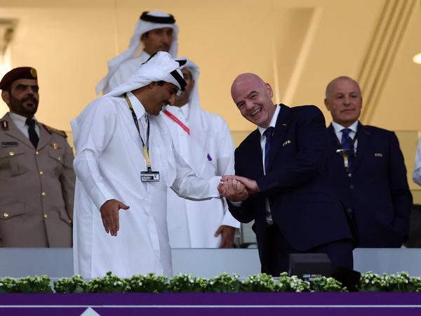 Zuvor hatte FIFA-Präsident Gianni Infantino die Zuschauer in mehreren Sprachen begrüßt, zuerst auf Arabisch. „Lasst uns Fußball feiern, weil Fußball die Welt verbindet“, sagte der Präsident des Weltverbandes.